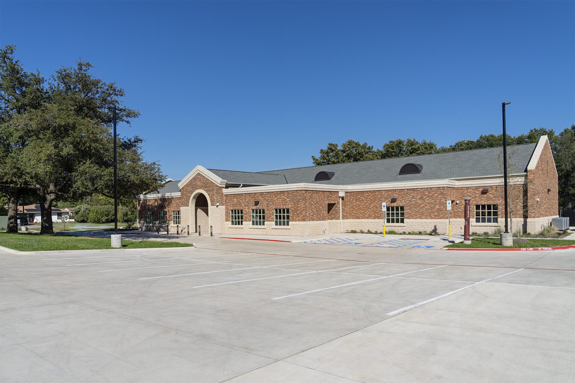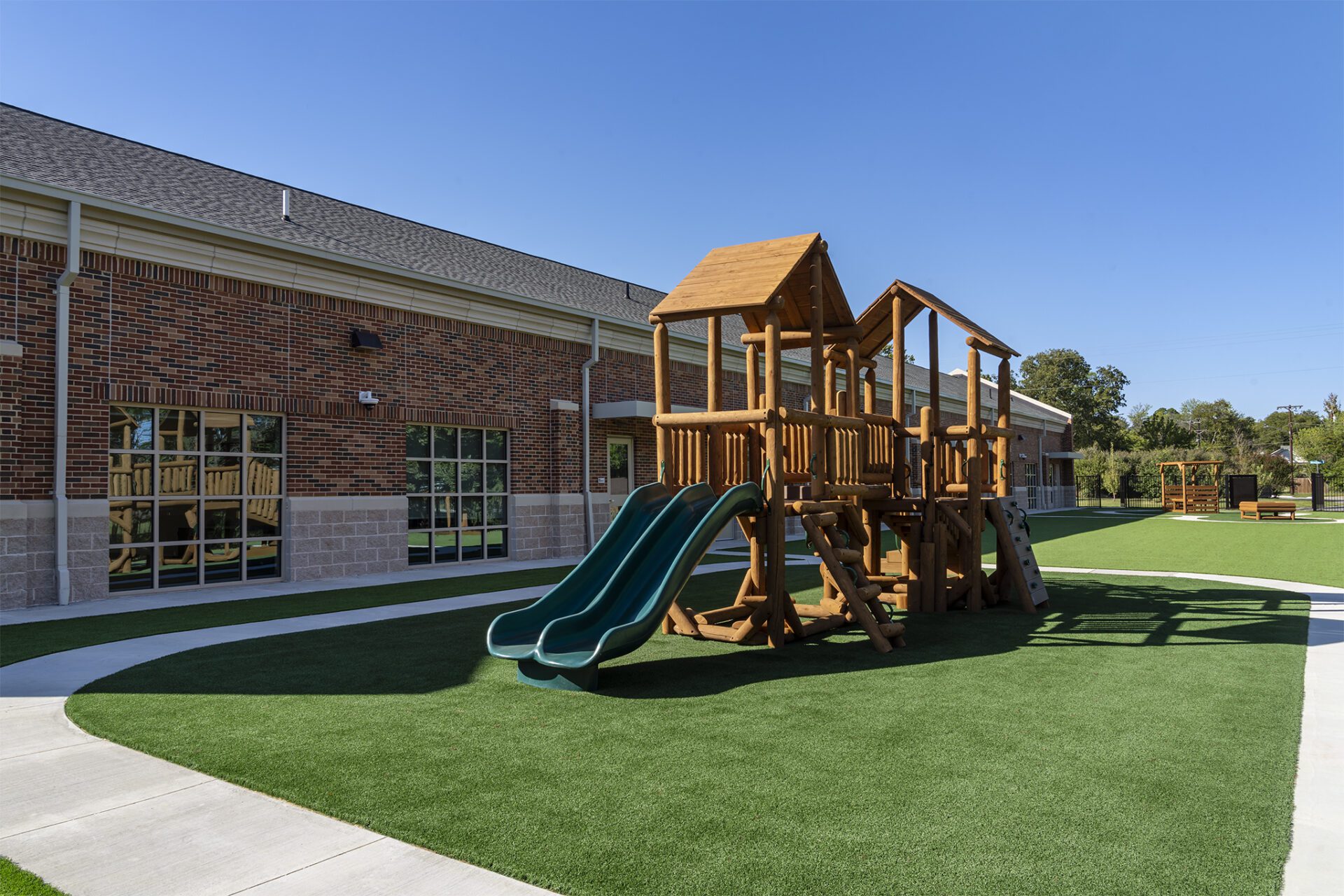 Bezos Academy is an approximately 10,950 s.f. preschool facility with 11,520 s.f. of outdoor play area. The school consists of six, large classrooms to accommodate approximately 120 children, a prep kitchen, conference room, teachers’ lounge, laundry area and other ancillary support spaces. The facility is located on the campus of Texas Woman’s University in Denton to provide Montessori-inspired, diverse classroom environments to this under-resourced community. Founded by Jeff Bezos, the preschool provides tuition-free for families and offers programming five days a week for children ages 3-5 years old.